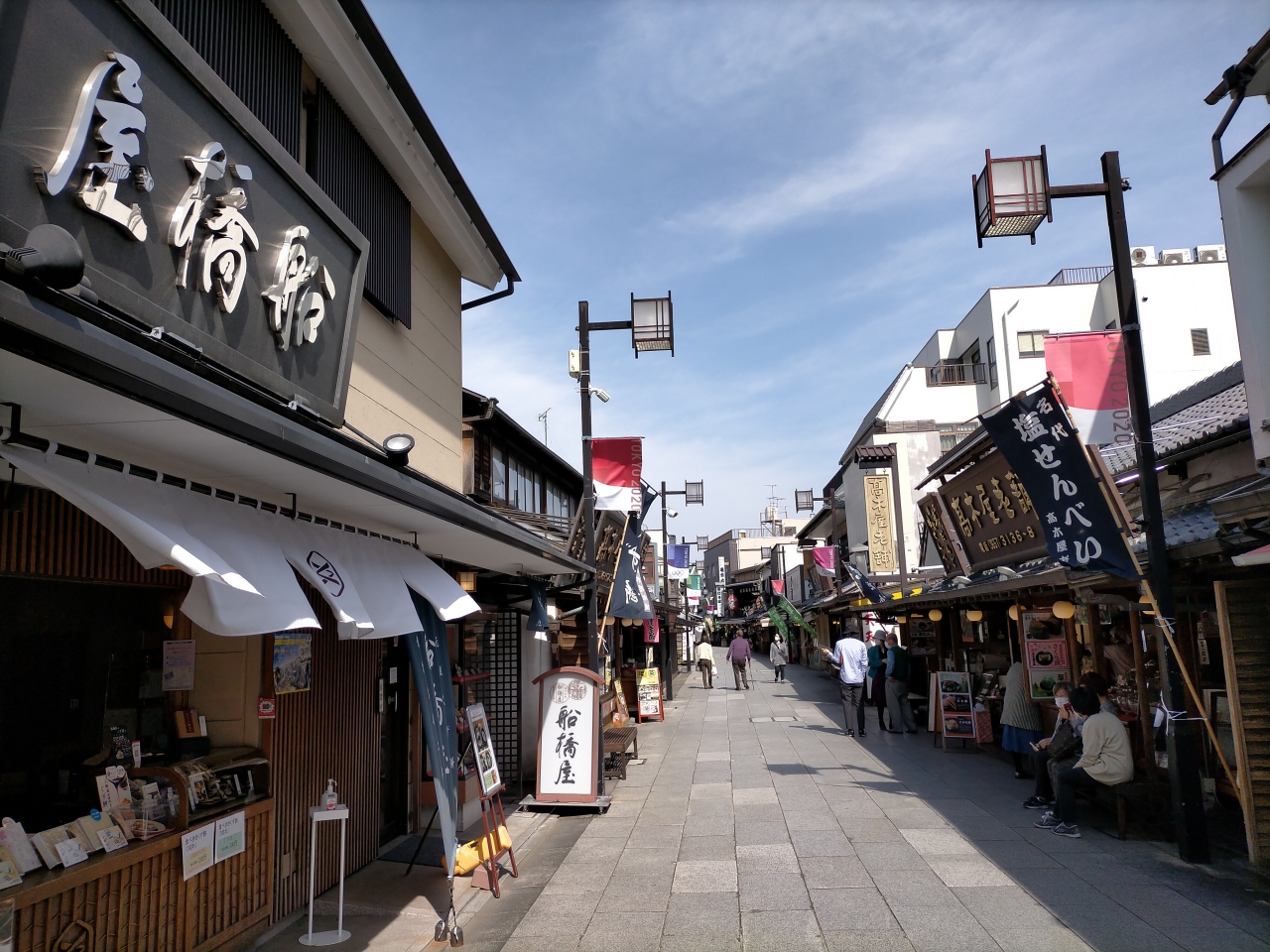亀戸天神 船橋屋 柴又帝釈天参道店は、柴又帝釈天参道沿いにドンと構えていて、和菓子特にくずもちが超有名な店で、絶対見逃せない観光アトラクションです。柴又帝釈天参道ぞいには、美味しいお店ばかりなので、選ぶのに困ります。