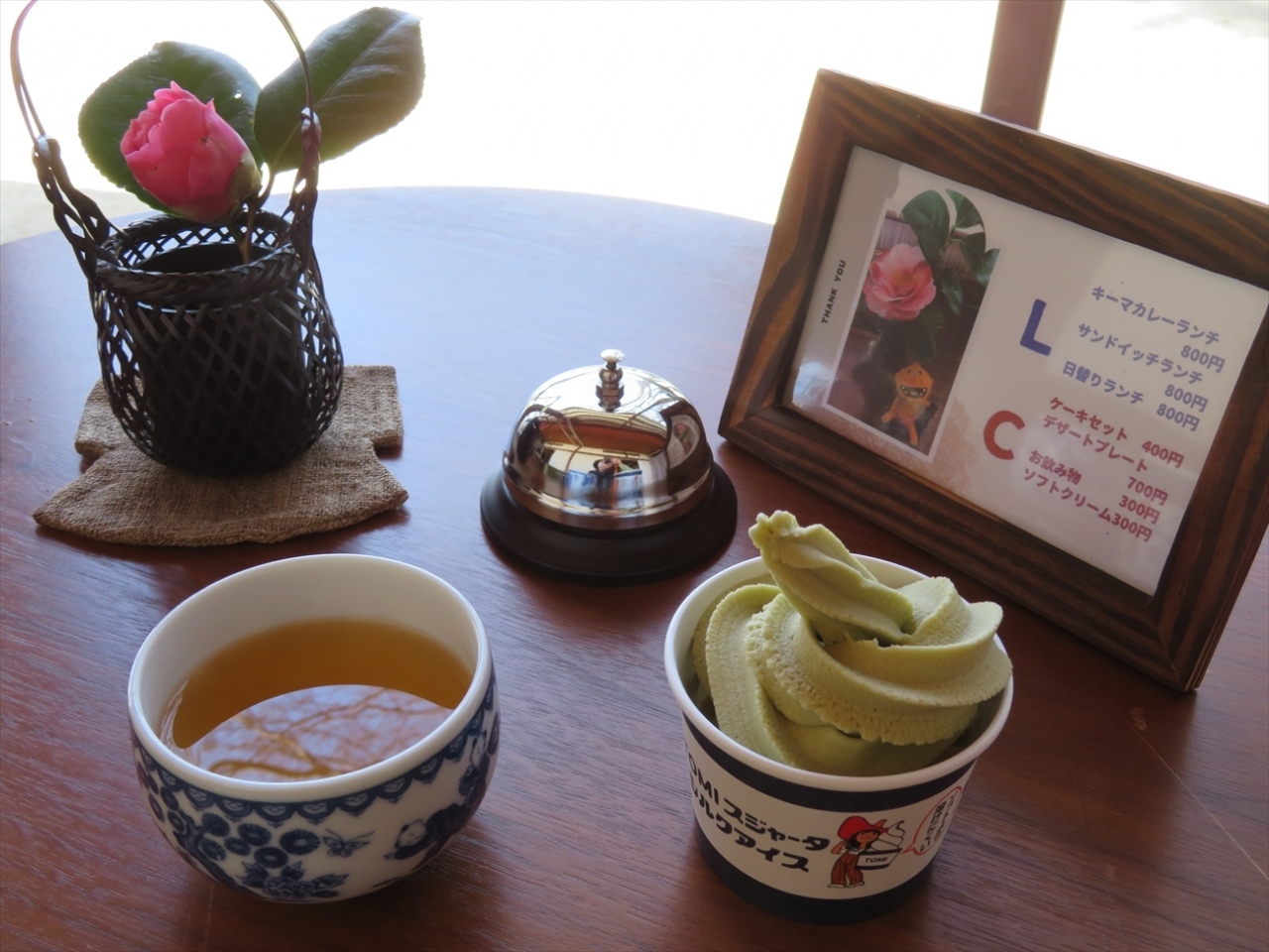 私は数種あるソフトクリームの中からずんだ味を選んで一休み。