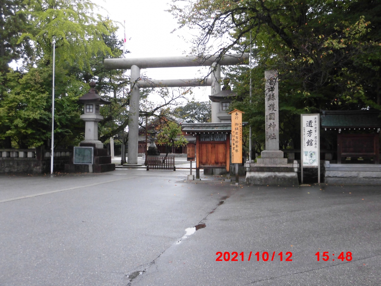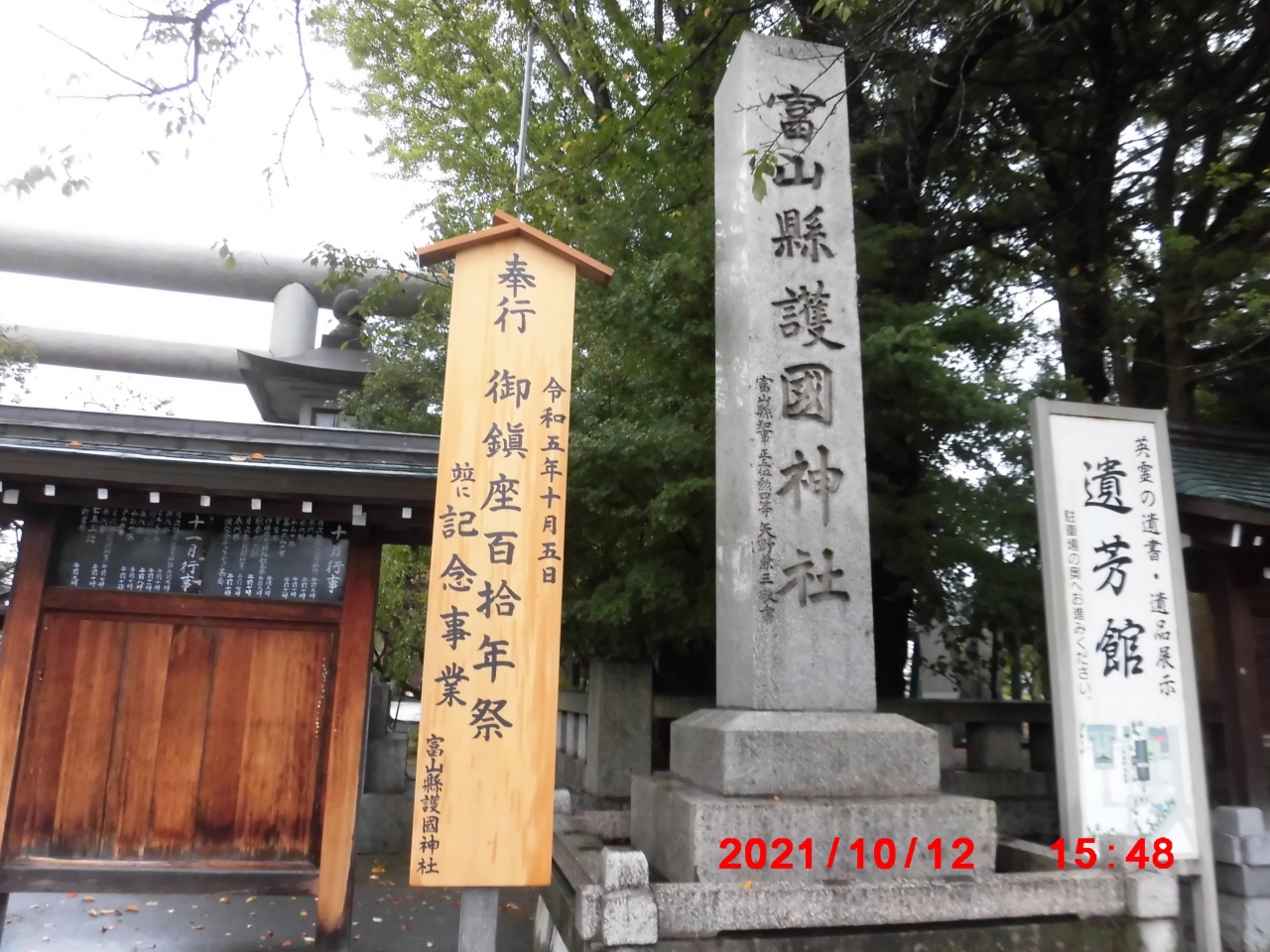 富山市観光で立ち寄りました。富山県護国神社は、宿泊していたANAクラウンプラザホテル富山から西に徒歩10分強で着きました。境内には相撲場、遺芳館、大きな社務所、メインの大拝殿があり、他にも戦争関係の犠牲者の碑や「つばさの塔」などがありました。