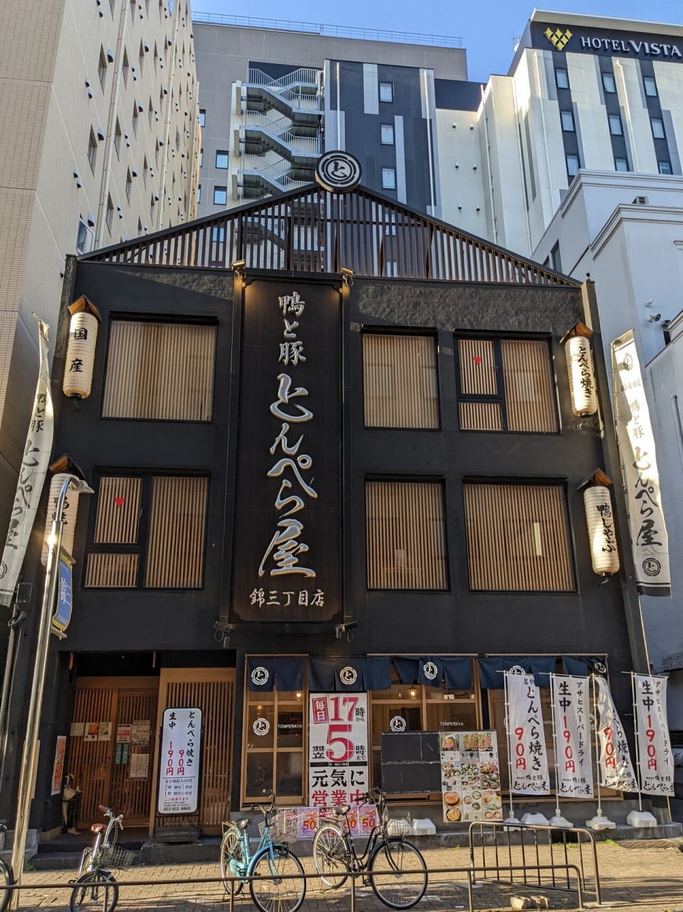 名古屋錦にある居酒屋です。リーズナブルな値段で鴨肉料理(ユッケなど)や鶏肉の刺身(もも、ササミ、レバー)を食べることができます。ハッピーアワーなら、インスタ投稿するとハイボールやサワーが1杯50円とお得です。
