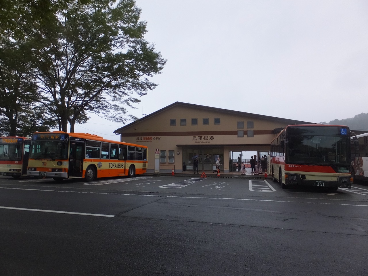なので元箱根港でも乗る船によって建物が違います。西武系の方がやや箱根神社寄りです。なお、バスに乗り継ぐ際、熱海行きなどはちょっと離れたバス乗り場になるのでバスと船の乗り継ぎの際は注意が必要です。