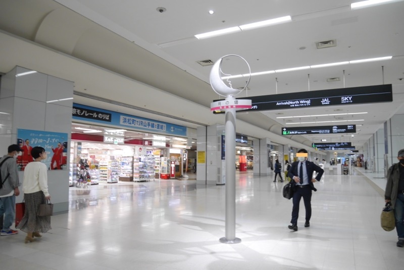 羽田空港の待ち合わせ場所。印象としては名古屋駅の両端にあるアレに近いかなと思いました。しかしそれでいて、名古屋駅のよりもモノとしてはシンプル。月の塔、と名前はついてはいますが美術作品として楽しむというよりは、グーグルマップ等に登録してもらうための名前付きの待ち合わせ場所というところでしょうか。