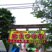 4月の最終土日曜日には「こんこん靴市」、11月の最終土日曜日には「靴のめぐみ祭り市」が行われます。どちらもイベントの内容は同じで、靴を中心に財布やベルトなどの皮革製品や洋服や小物を扱う露店が境内と周辺に立ち並びます。今回は時節柄、マスクも多く売っていました。格安ですが粗悪品もあるので見極めることが必要です。