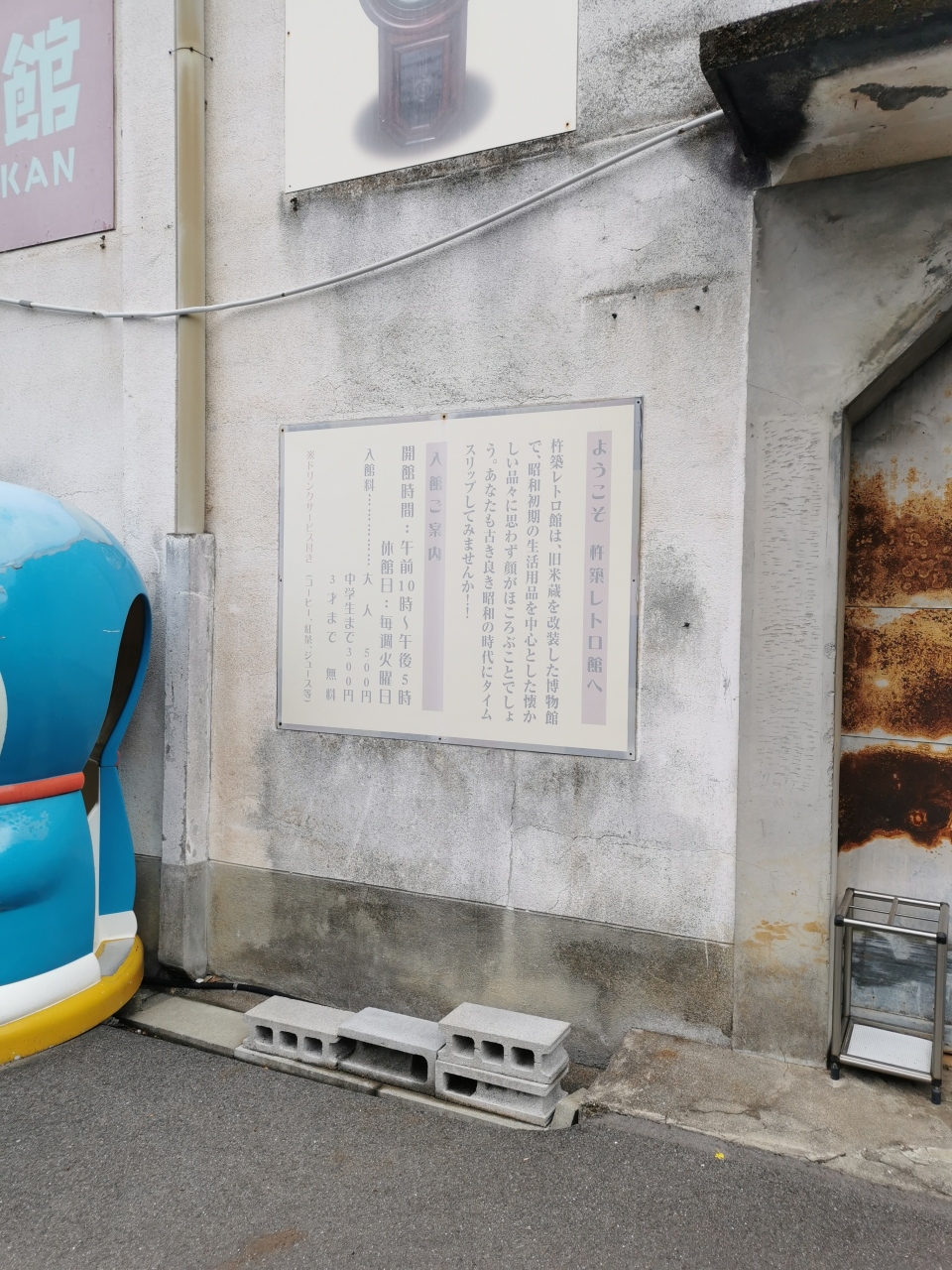 大分観光で杵築市に来ました。杵築城の城下に位置する場所に杵築レトロ館がありました。元は米倉で改築(?)したそうですが、どう見ても廃屋寸前の見た目で、ちょっと恐いです。中には館長が収集した江戸時代から昭和初期までの生活用品や玩具、楽器、学校用品があるそうですが、見た目で駄目でしたので入館はあきらめました。味があると言えばそうなのですが、もう少し工夫した方が良い感じです。