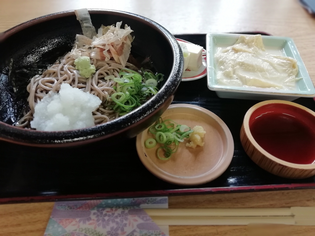三千院の門前にあったので、お昼を少し過ぎたころに入りました。出来立ての湯葉が出てくるようだったので、湯葉とお蕎麦のセットを頼みました。湯葉はほんのり温かくて、なにもつけずに食べてもお豆の甘さがあって美味しかったです。ただ、お蕎麦は柔らかくてがっかりしました。
