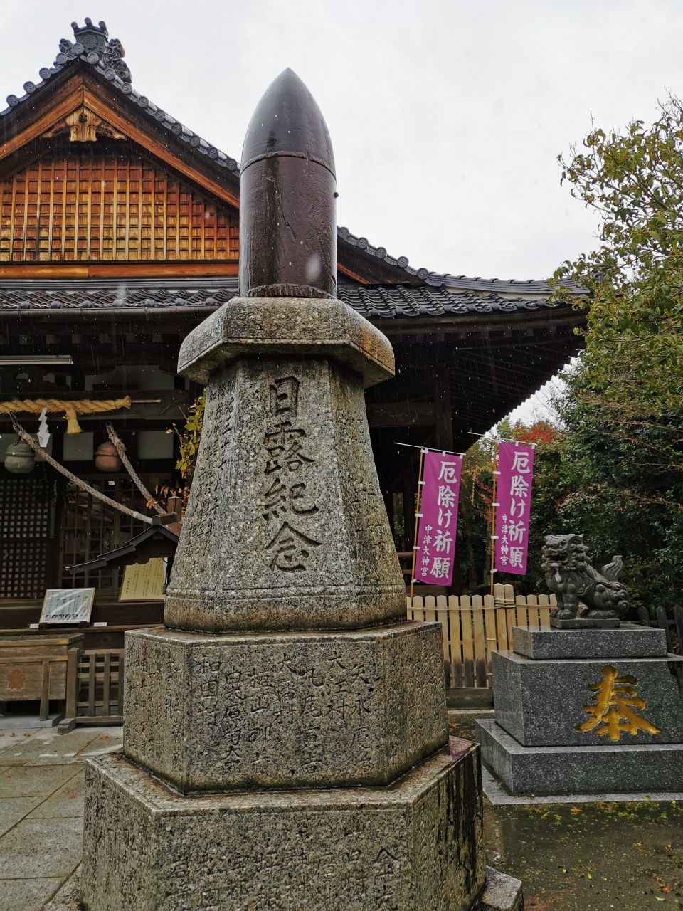 中津城公園の中にある中津大神宮に参拝立ち寄りしました。明治十四年に伊勢神宮の大神様お迎えして中津城址に鎮座されたそうで、豊前の国のお伊勢様と地元の方が参拝されているとの事です。中津城公園には無料の駐車場もありますので便利です。駐車場は砂利引きで階段も少々あるので足が悪いと歩きにくいです。境内には日露戦争の砲弾が祭られています。