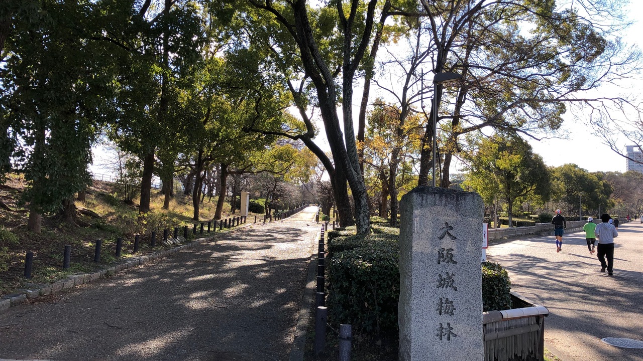 大阪城公園の中にある梅林です。三角形型の土地の中に、100品種・約1200本を超える梅が育っています。大阪城公園は、お堀沿いの桜が有名ですが、梅林も、関西有数のお花見スポットです。梅は、桜と違って、1~3月まで長く眺められるのがいいです。