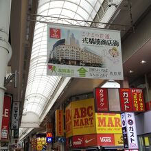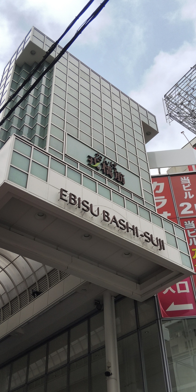 戎橋筋商店街は御堂筋のちょっと東側にある商店街です。歴史は古く、元禄時代から続く名物老舗店から最先端のファッションをリードするショップまでが揃う、大阪・ミナミのど真ん中に位置する商店街です。道幅はあまり広くないです。