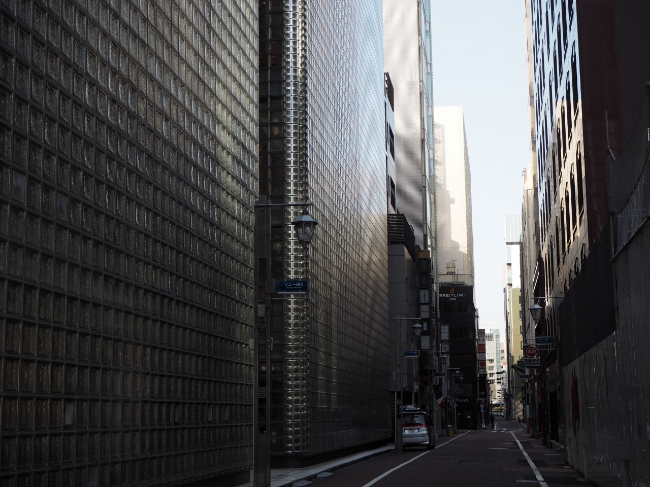 ソニー通りは有楽町前の外堀通りのすぐ南側の通りがソニー通りです。晴海通りとの角に銀座ソニーパークがある古都からついた名前でしょうか。またエルメスの店がその向かいにあります。ソニー通りは狭い通りで歩いて行くと特にブランドショップなどはないので、進んで行くほど歩いて行く人は少なくなってくる感じがあります。