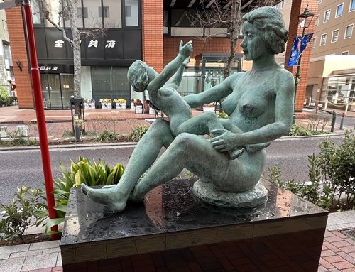 横浜はさまざまな海外文化を受け入れた場所なので「発祥の地」碑の類が実にたくさんあります。散策テーマとして「発祥の地」碑巡り、が間違いなく成立するほどです。今回の旅では馬車道のホテルに泊まっていて、馬車道にもさまざまな「日本最初」「発祥の地」がありました。そのなかでどうもどこかで見たことのある母子像が気になり、唐突な感じがしたので作品名の下に貼ってある小さな説明板を読んでみたところ、アイスクリーム協会神奈川支部が1956年に寄贈したものだと読めました。作者は本郷新で、各地に多くの母子像を残しています。実は自分の記憶にあった札幌・大通公園の母子像の作者は別の人物だったのですが、異なる構図の本郷作品(母子像)を道庁の敷地内でも見ていました。作品としての力感がさすが、という感じですが、さすがにこの母子からアイスクリームは連想できません。