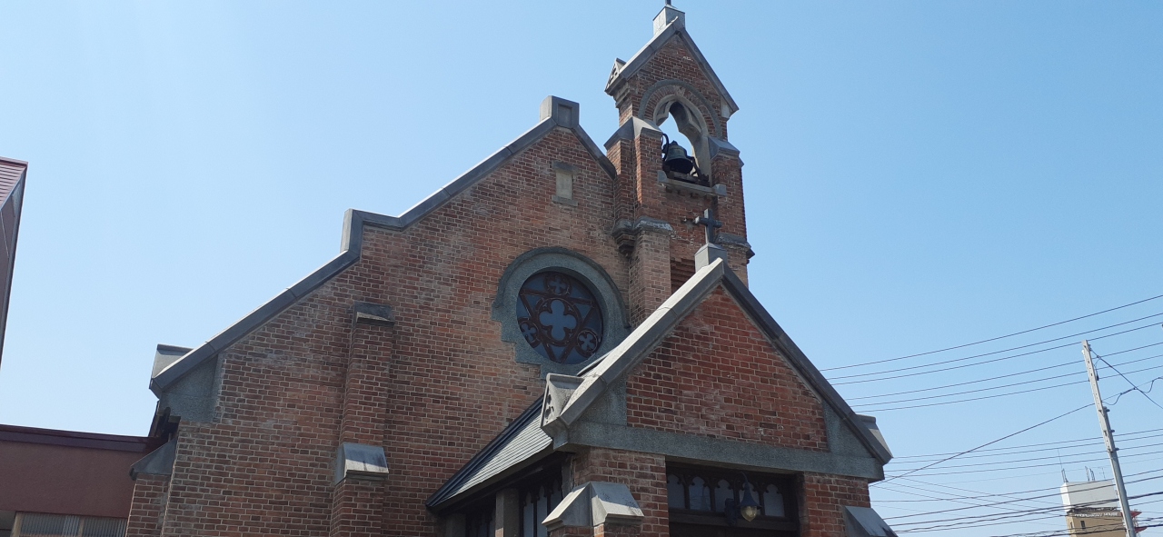 赤レンガで建てられた教会で赤レンガの雰囲気がとてもいい絵になる教会です。