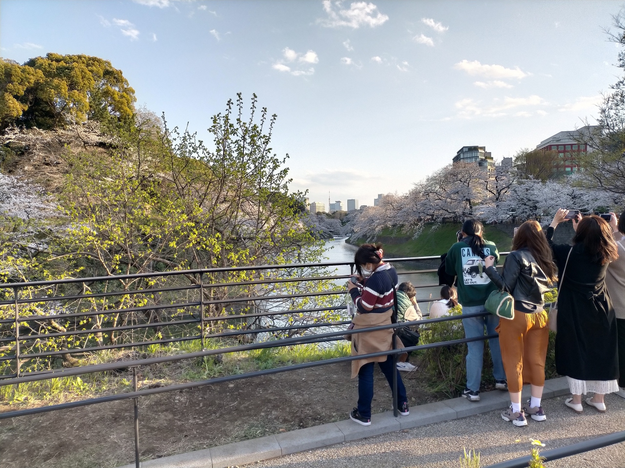 九段坂公園を、ソメイヨシノがほぼ満開時に訪問しました。添付写真のように、おなじみの千鳥ヶ淵を撮るのに最適な場所の一つで、いつも人だかりが多いです。新型コロナウイルス蔓延中でしたが、桜好きの日本人が我慢できるはずがないですね