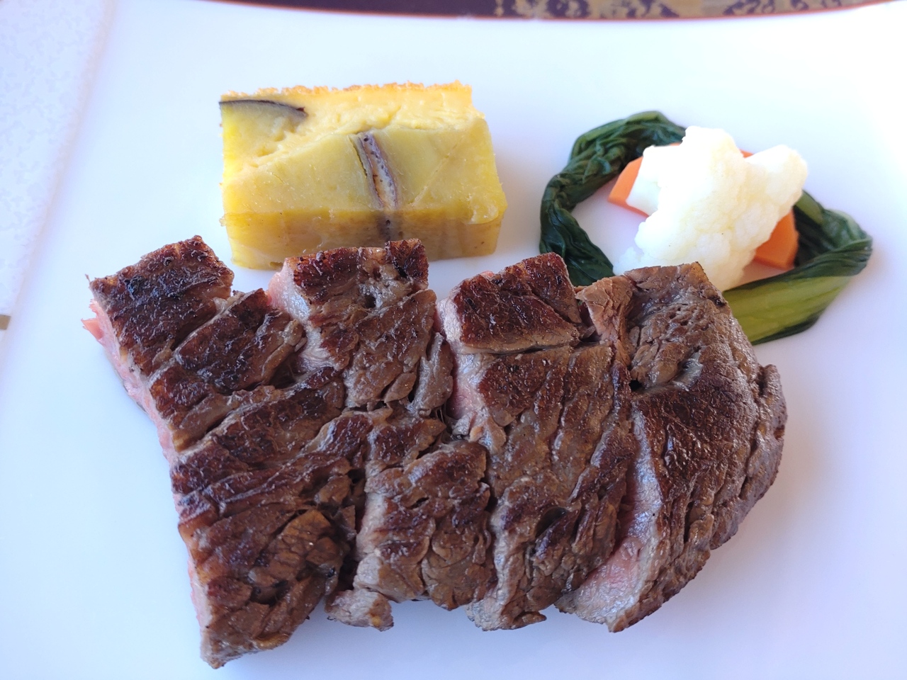 美味しい料理を頂きながらレインボーブリッジやお台場の景色。