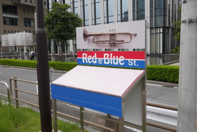 レッドアンドブルーってなにをイメージしているんだろう?リズムアンドブルースに色の名前とかけてみたのか?それとも血か?と考えていたら、帰って調べたら血で正解だそうです。堂島川沿いにのびる通りで、訪れたときは新緑がきれいでした。ゆったりと散歩できる通りです。