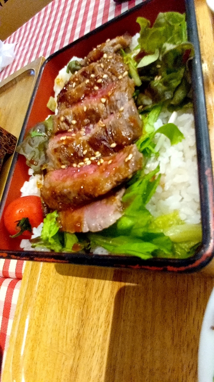 『鳥取和牛使用 ステーキ重』が数量限定にて限定メニューとなっていて、前回いただいた際に美味しかったのでまたいただくことにしました。とても柔らかなお肉で、添えられているわさびがアクセントとなりさらに美味しくいただきました。