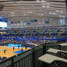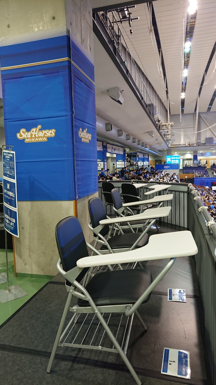 4月下旬の休日午後に、Bリーグ、三河対信州を観戦するため、公園内の、体育館を訪問しました。席種は、今シーズンから新たに、二階のコーナー二ヶ所に設置された、コーナー指定席。座席位置は、メイン側ホーム寄りでした。斜めからコートを見る形、テーブル付きの椅子、共に新鮮で、楽しい観戦体験となりました。試合の方は、81対72で、三河の勝利でした。なお、試合後のイベントで、サブアリーナにも立ち入り、体育館を満喫しました。