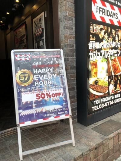 原宿のキャットストリートにあるTGIフライデーズはハッピーアワーの設定があります。