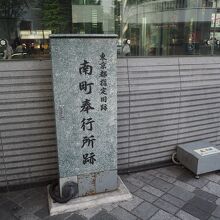 JR有楽町駅の中央口を出た駅前の広場に東京都指定旧跡、南町奉行所跡という石碑が建っています。特に説明板などはありません。北町奉行所がJR東京駅の八重洲口にあるので、両者の距離が近すぎるという印象です。奉行所がつくられたころは江戸の町があまりにも小さかったというこでしょうか。