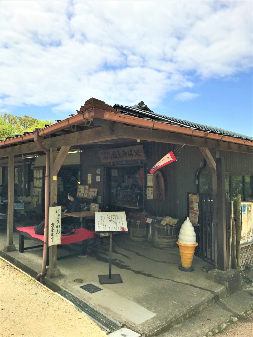 にゅうめんや冷やしそうめん、ぜんざい、わらび餅、甘酒等々のメニューがあったが、お昼ごはんをとるにはまだ少し早かったので、自分はアイスコーヒー、同行者たちはソフトクリームを注文し、小休止。