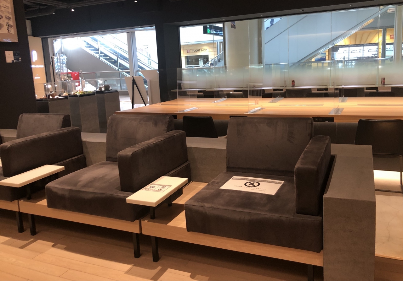 航空神社で参拝し、旅の安全とコロナ退散を祈願してから、一息入れに行きました。航空神社の近くです。搭乗券とゴールドカード以上のカードを見せて入場。日本の伝統工芸などが飾られており、暗くシックな感じです。