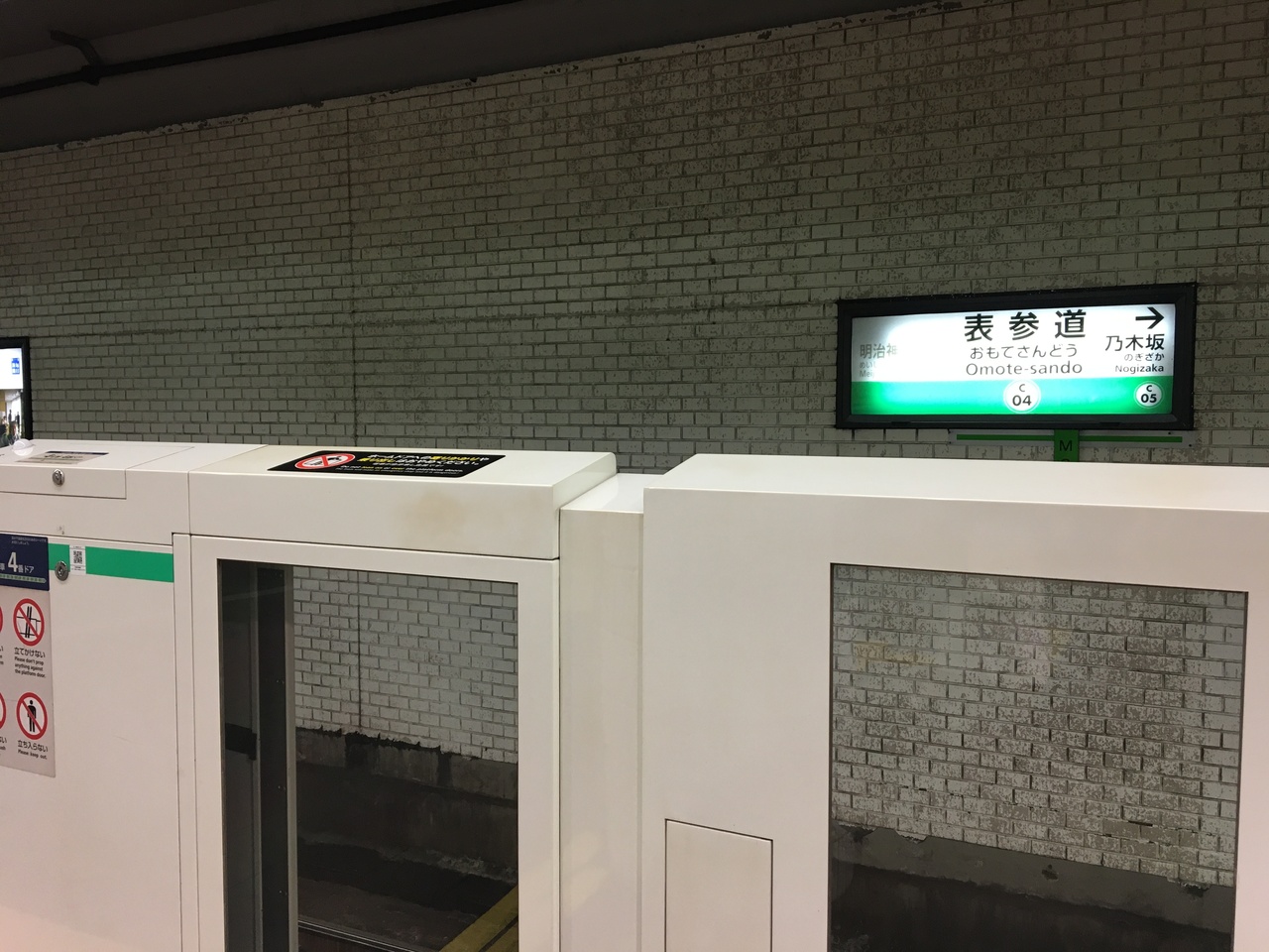 乃木坂と赤坂エリアを散歩しに行った時に、表参道駅から千代田線に乗車しました。シルバーのベースに、グリーンのラインが入ったデザインの車体です。土曜日の午後に乗車しましたが、それほど混雑しておらず、座ることができました。