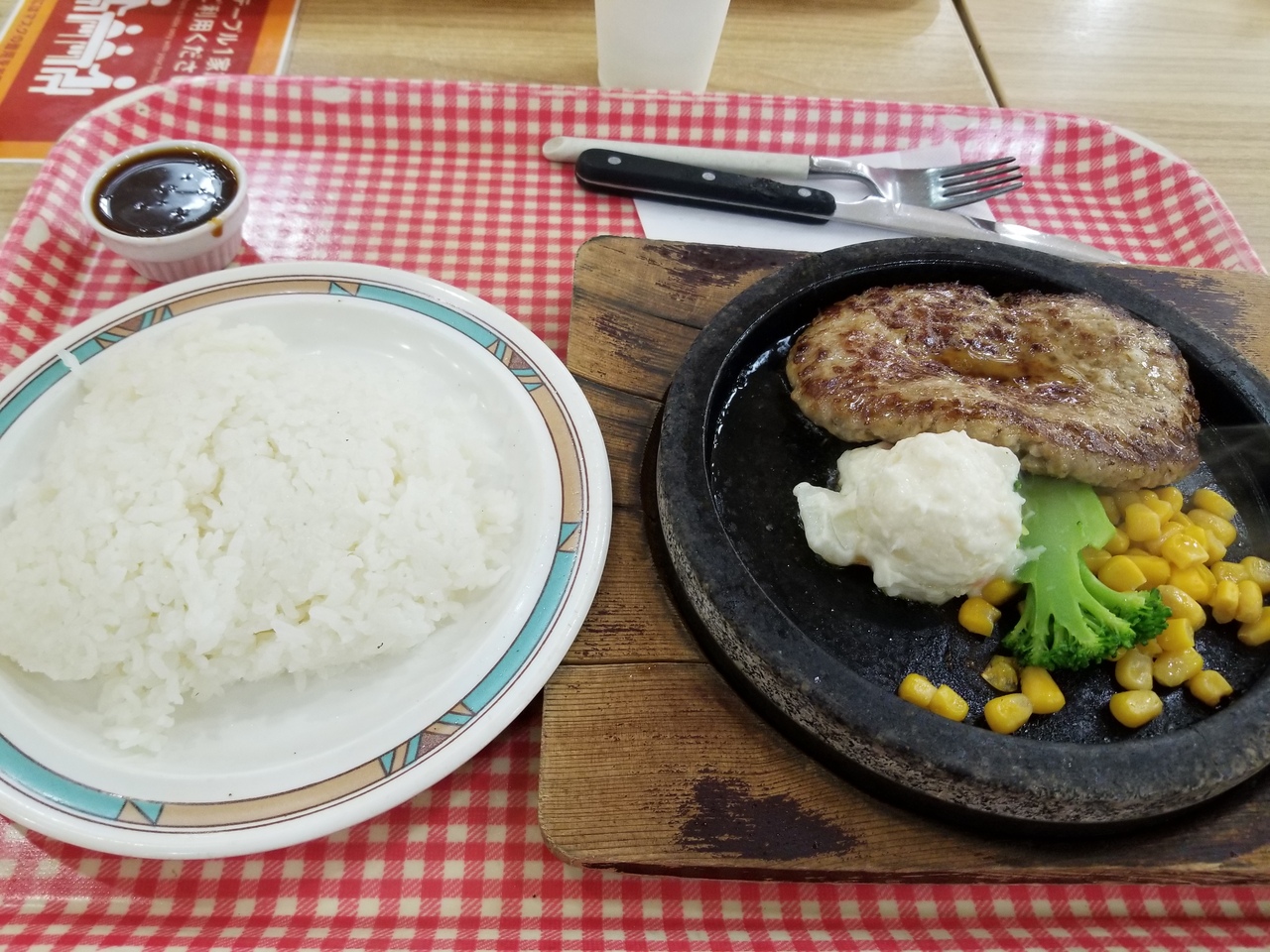 ハンバーグの味は肉臭くはない。やや半生の状態で出てくるので鉄板で火を通す感じだ。
