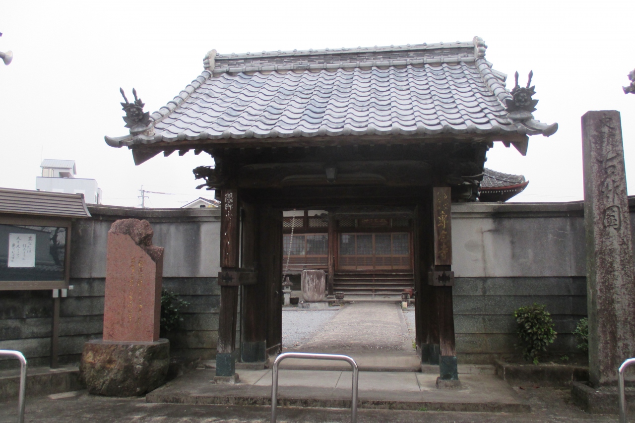専念寺は、願正寺の斜め前にありました。(住所は亀山町に変わります)本堂が普段良く見る平入ではなく、妻入なのが珍しいと思いました。このお寺は三絶僧として有名な平野五岳さんが住職を務めた寺として知られています。正に超人だった様で、好きなことを問われて「我が好きは,酒と肴と,碁と相撲,金と,女は言うまでもなし」、そして、辞世の句は「いざ西へ向かいて先に出かけ候、そろそろござれ後の連中」です。夏目漱石は、五岳さんが亡くなってから6年後の1899年(明治32年)に訪れていますが、そこで読んだ詩が「詩僧死して只凩の里なりき」です。巨星堕つと木枯らししか吹かないと詠ったのでしょうか。なお、山号はなく、真宗大谷派のお寺さんです。