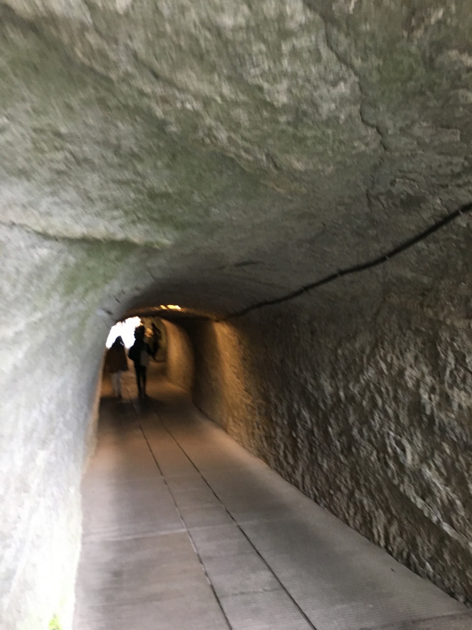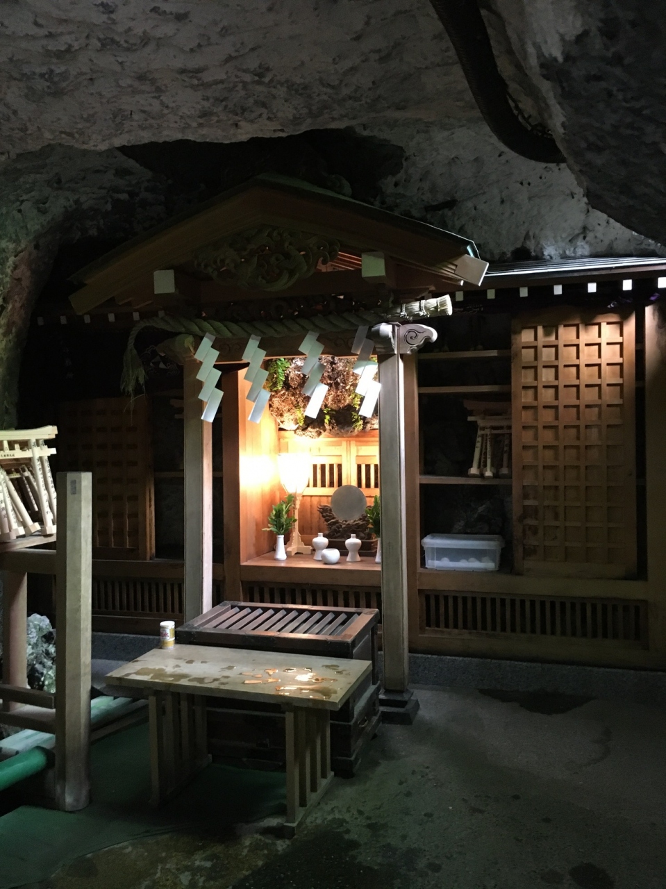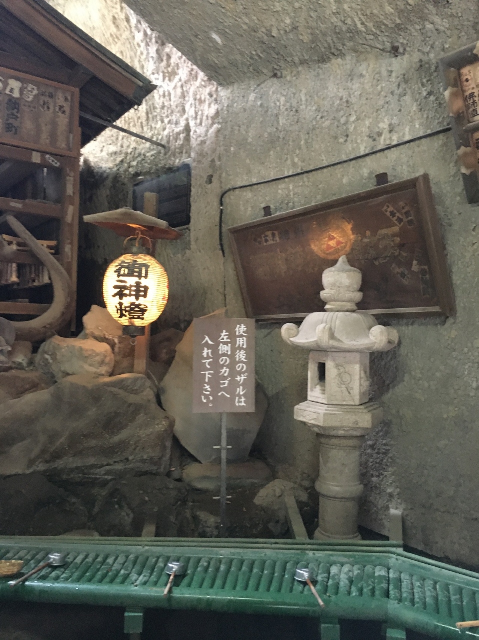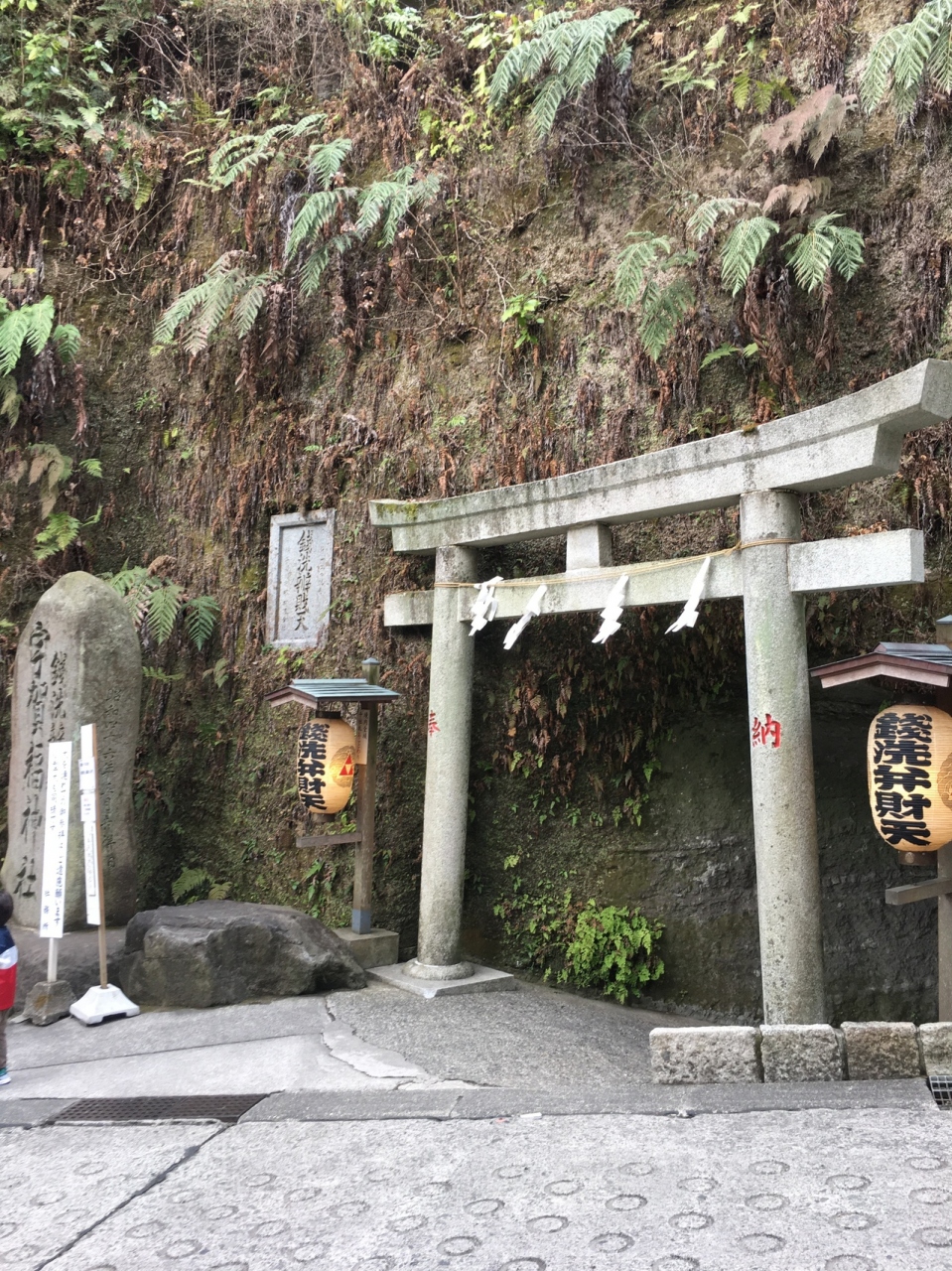 鳥居の後方は崖のようになっていて、トンネルを潜り境内に行きます。トンネルを出ると鳥居がたくさん連なっていました。奥宮があり洞窟になっていて、10円玉等の硬貨を洗っている人が多くいました。礼拝所のような場所もあり神秘的な空間でした。