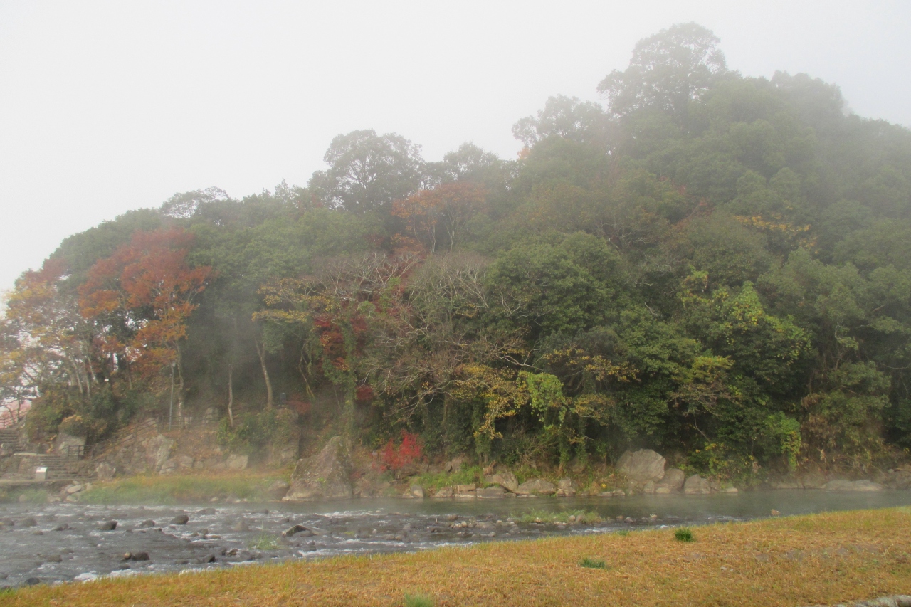 鏡坂公園の方から見ると、亀の様に見えることから亀山公園と呼ばれる様になったとか。今は木が育っていて、良く見えませんでしたが・・・。日田盆地には日隈山(標高110m)、月隈山(標高119m)、星隈山(標高101m)という三つの隈山がありますが、ここはその中の日隈山です。下を流れる三隈川の標高は83mですから、27mほど立ち上がっていることになります。山頂には日隈神社がありました。