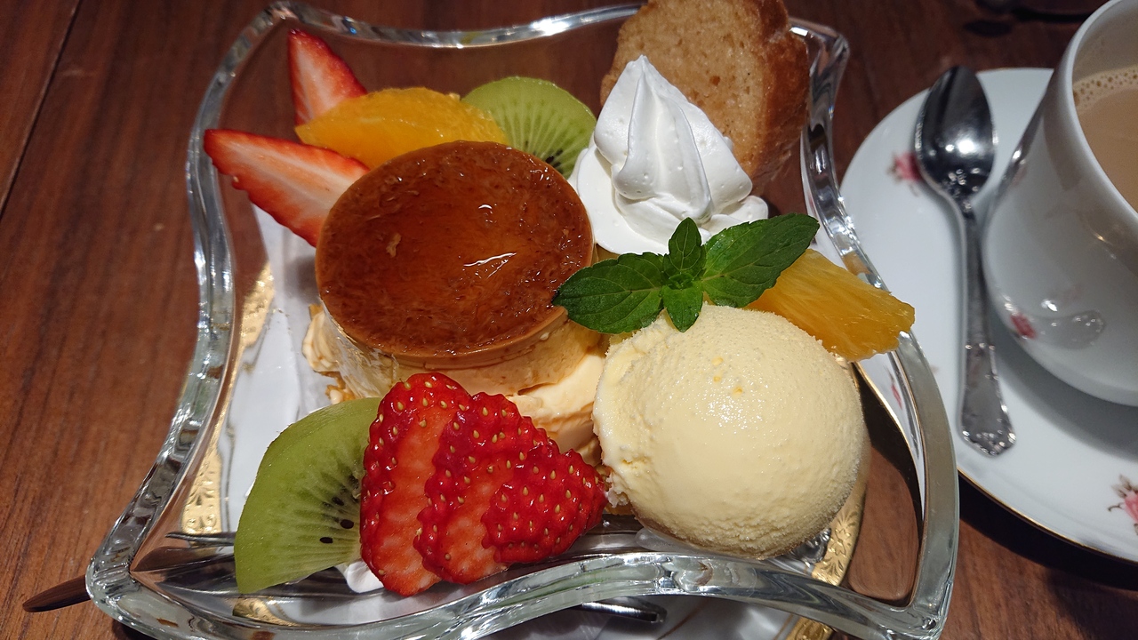 プリンアラモードが食べたくてこちらへ。でもお腹もすいていたのでサンドイッチも食べました。食事メニューもビザやカレー等いろいろありました。甘味より食事の方が美味しいかも。プリンは甘め、生クリームに胃もたれし、おかわりコーヒーもいただきました。