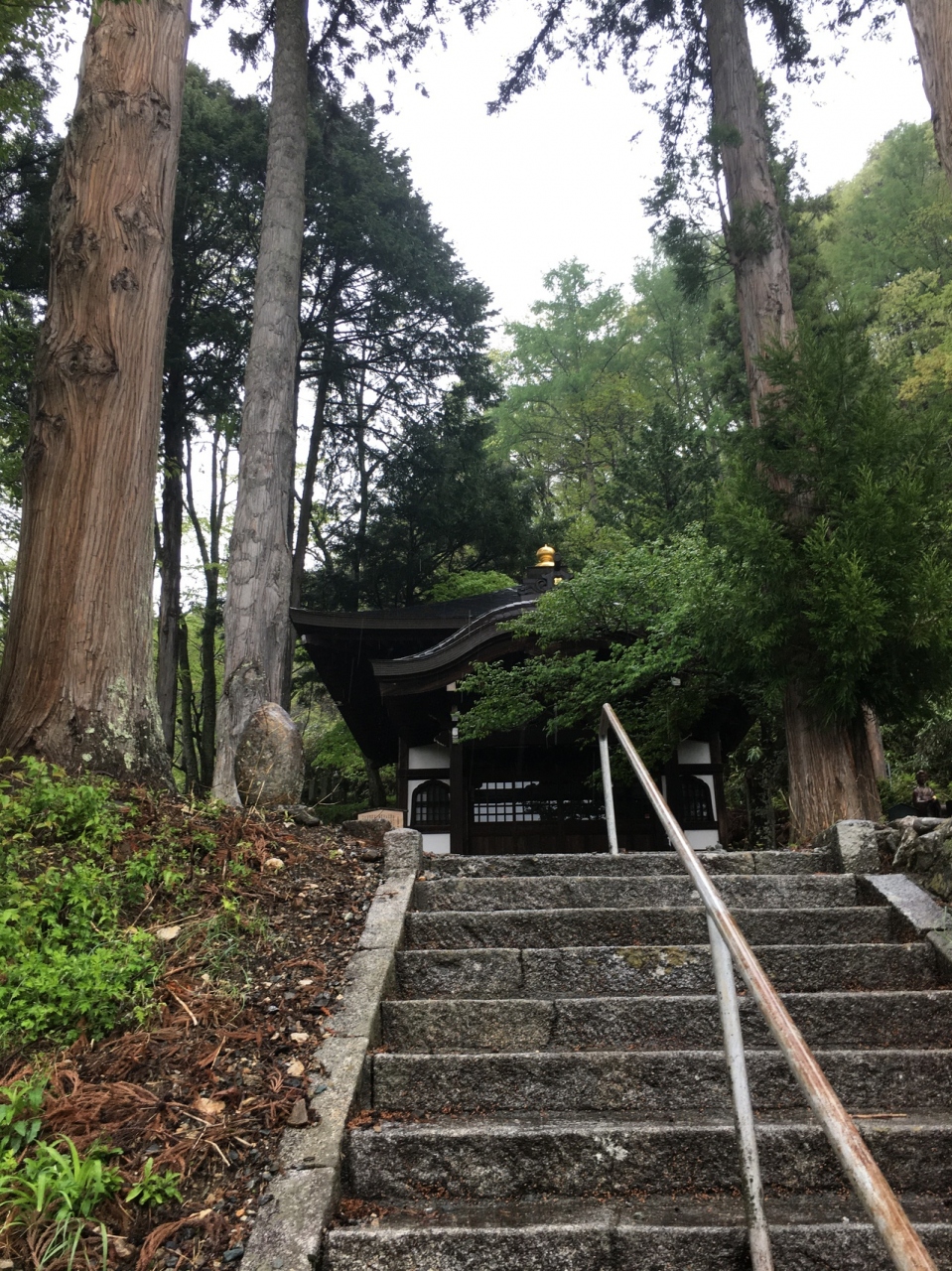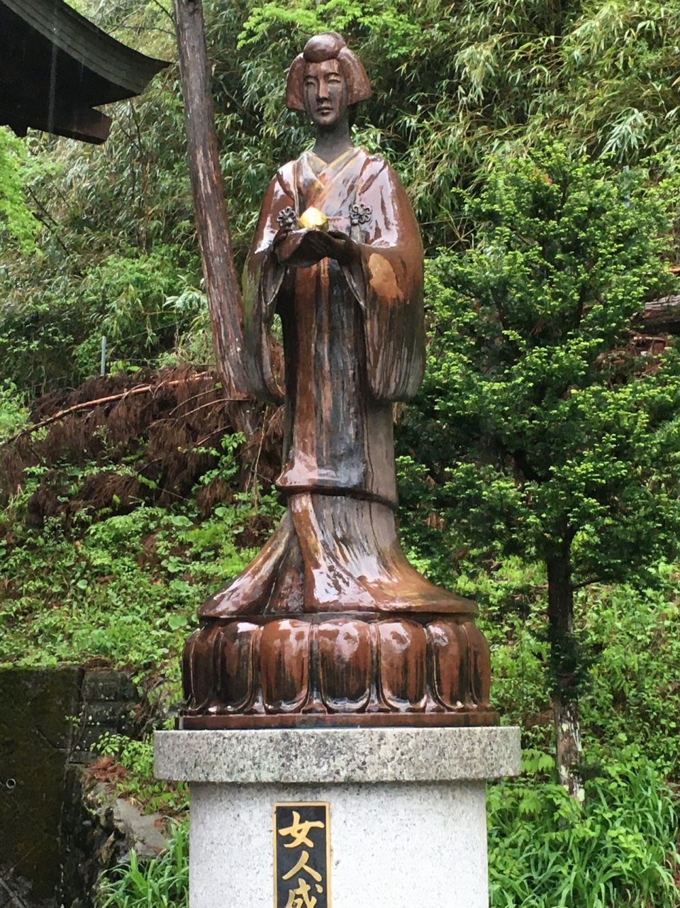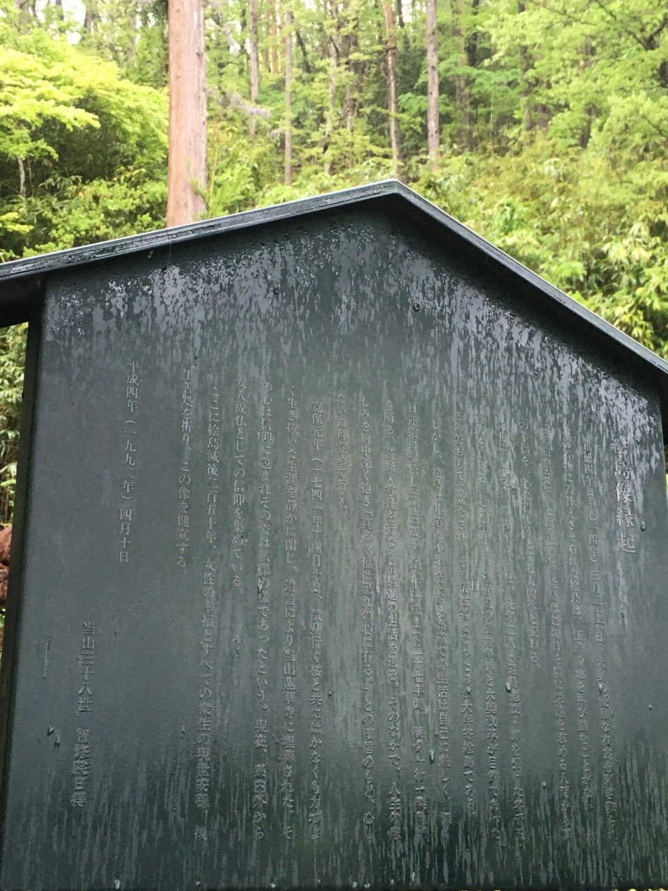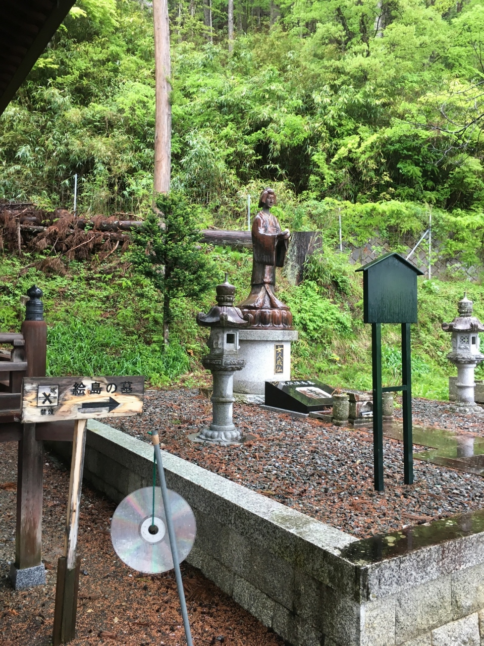 蓮華寺内にあり本堂裏手のお墓の中にありました。案内看板が4箇所あり迷わずに行くことが出来ます。七面堂の建物内の横にあり、実物大の姿の像があって、説明看板は緑色で読みにくい字でした。灯籠が左右にあり、像がツヤツヤでした。