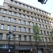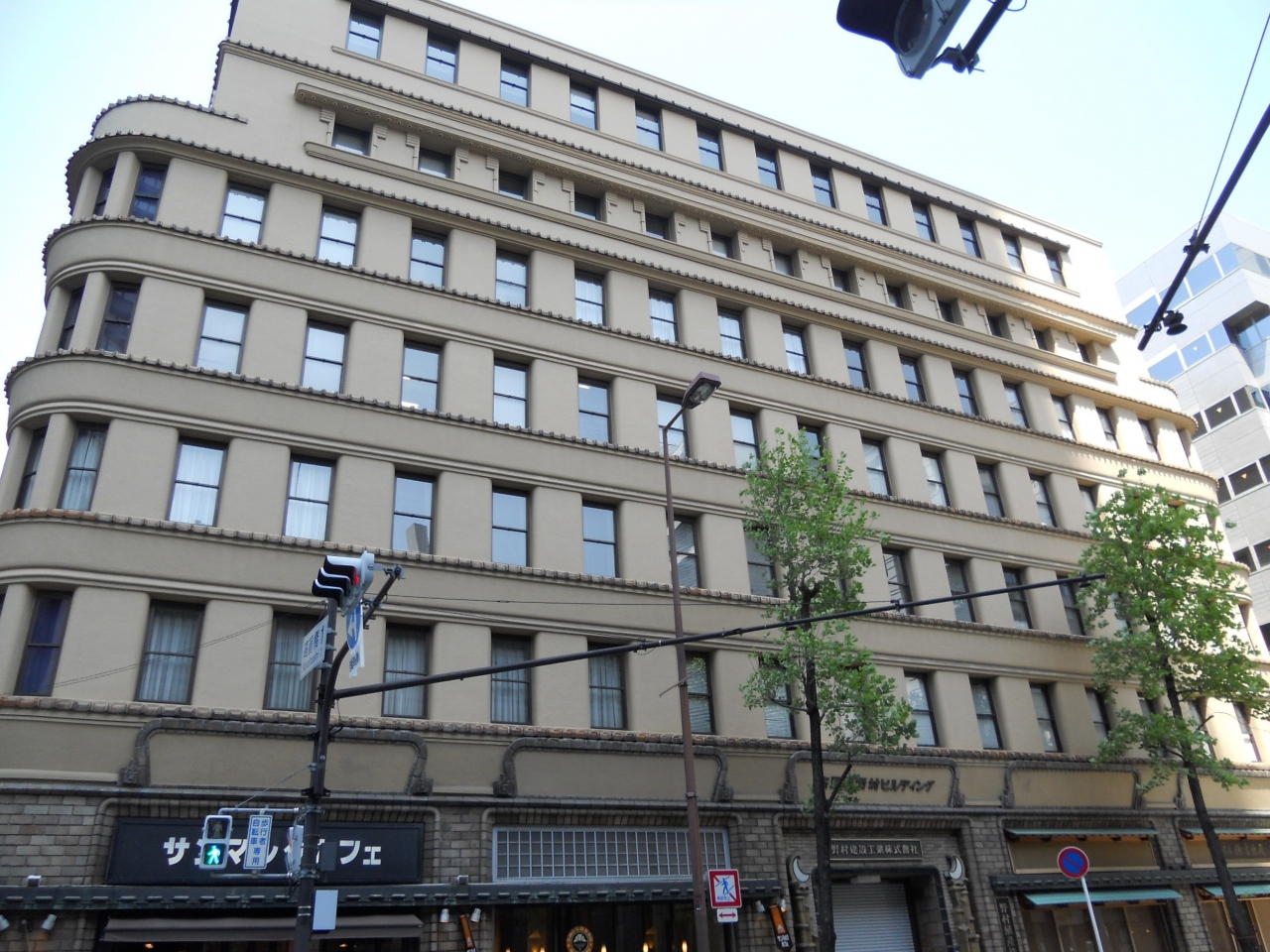 「高麗橋野村ビルディング」はコーナー部分の曲線が印象に残る色合いも素敵なビルです。
