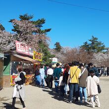 さくら祭りのときに行きました。飲食可能地域だったので出店が多く出てました。