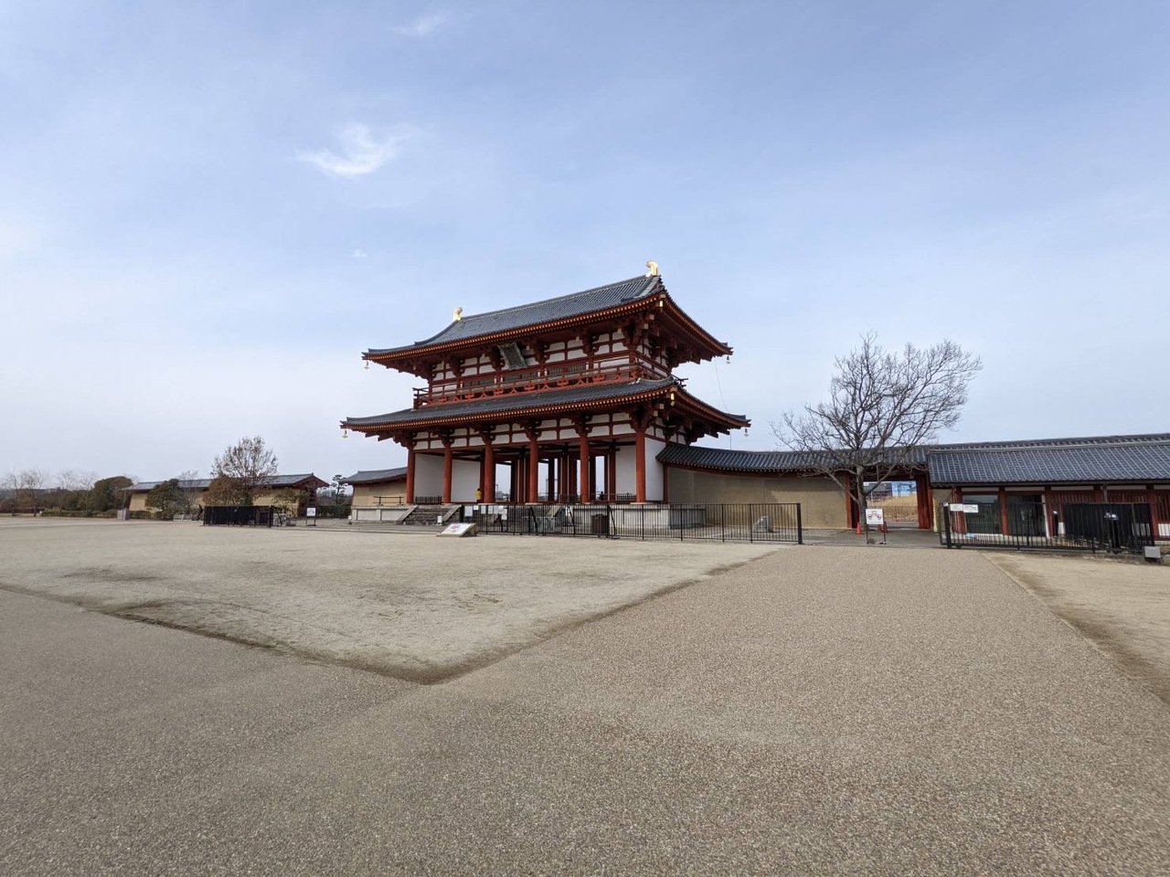 平城宮跡は、広い公園として整備・復原されていました。奈良時代には、この地に日本の首都があったと考えると、壮大な歴史の1ページに触れた感じを実感しました。公園内には、復元された朱雀門や遣唐使船などがあり、見ごたえがあって良かったです。