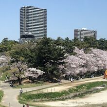 豊橋から名鉄本線に乗り、名古屋に向かう途中、東岡崎を過ぎてすぐに、岡崎城が見え、その手前を流れる乙川の、河川敷に、綺麗な桜が満開に咲き、出店や屋台、遊戯施設などがあって、たくさんの人が訪れているのが見えました。岡崎公園内には、約800本の桜の木が植えられ、ているそうです。