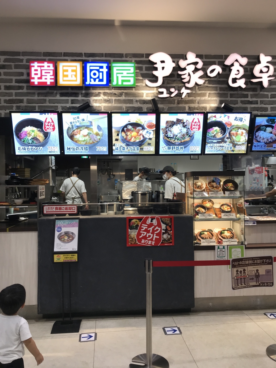 尹家の食卓は、イオンモールKYOTO 4Fのフードコートにあります。今回頂いたのは、ピビンパ。お肉と野菜、キムチ、お焦げご飯がバランスよく組み合わさり、とても美味しかったです。卵を50円で追加しました。またコチュジャンで辛さを調節することもできます。お腹もふくれ、満足できるヘルシーメニューでした。