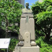 神田明神の境内に隣接する宮本公園にあります。説明板がありました。神田で銅や真鍮を扱っていた商家の三谷長三郎は明治時代に家業を発展させて財を成した人です。地元神田区の学校教育のために貢献したその偉業をたたえて、神田明神の境内に1934年に胸像を設立しました。その後、境内整備のために現在地に移設したことなどが記されています。数多くの作品を残した北村西望に依頼して造られた像は、台座を含めると3mほどです。公園で遊ぶ子供たちを見守りながら、まなざしは遠くを見据えていました。