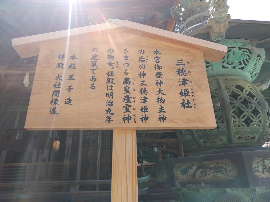 御本宮御祭神大物主神の后の神様、三穂津姫神が祀られています。