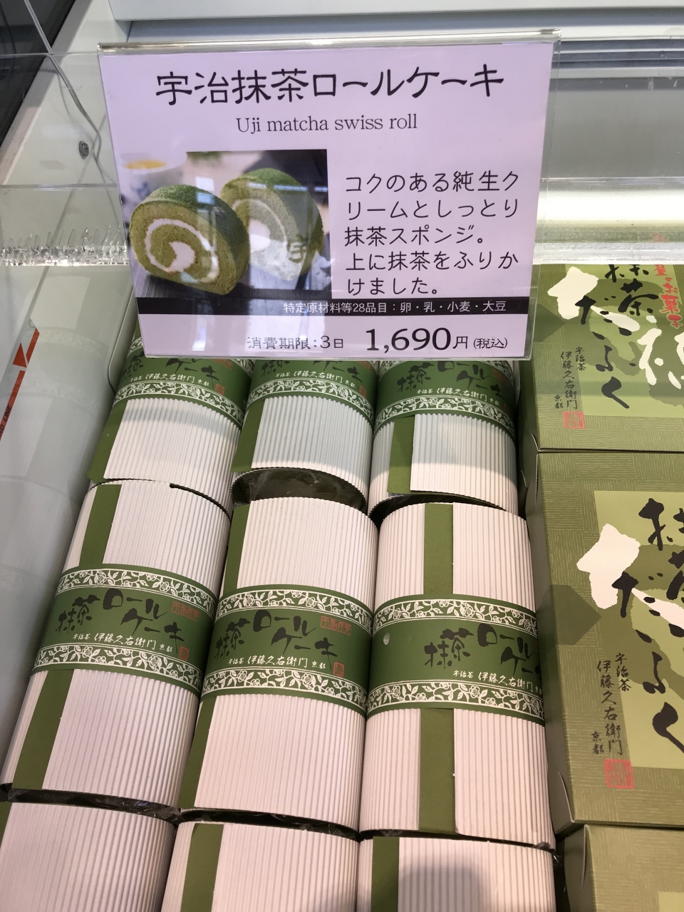 今回購入したのは、宇治抹茶ロールケーキと宇治抹茶生チョコレート。宇治抹茶ロールケーキは、シフォンケーキのようなふんわりしたスポンジ生地。抹茶の香りがよく、苦味は少なく味をしっかりと感じられます。生クリームはややかためですが、生地や抹茶とのバランスがよく調和がとれていておいしい。宇治抹茶生チョコレートは、普通に抹茶生チョコという感じ。口どけが良くてとても美味しいのですけど。もうちょっと抹茶を主張させて欲しかったです。