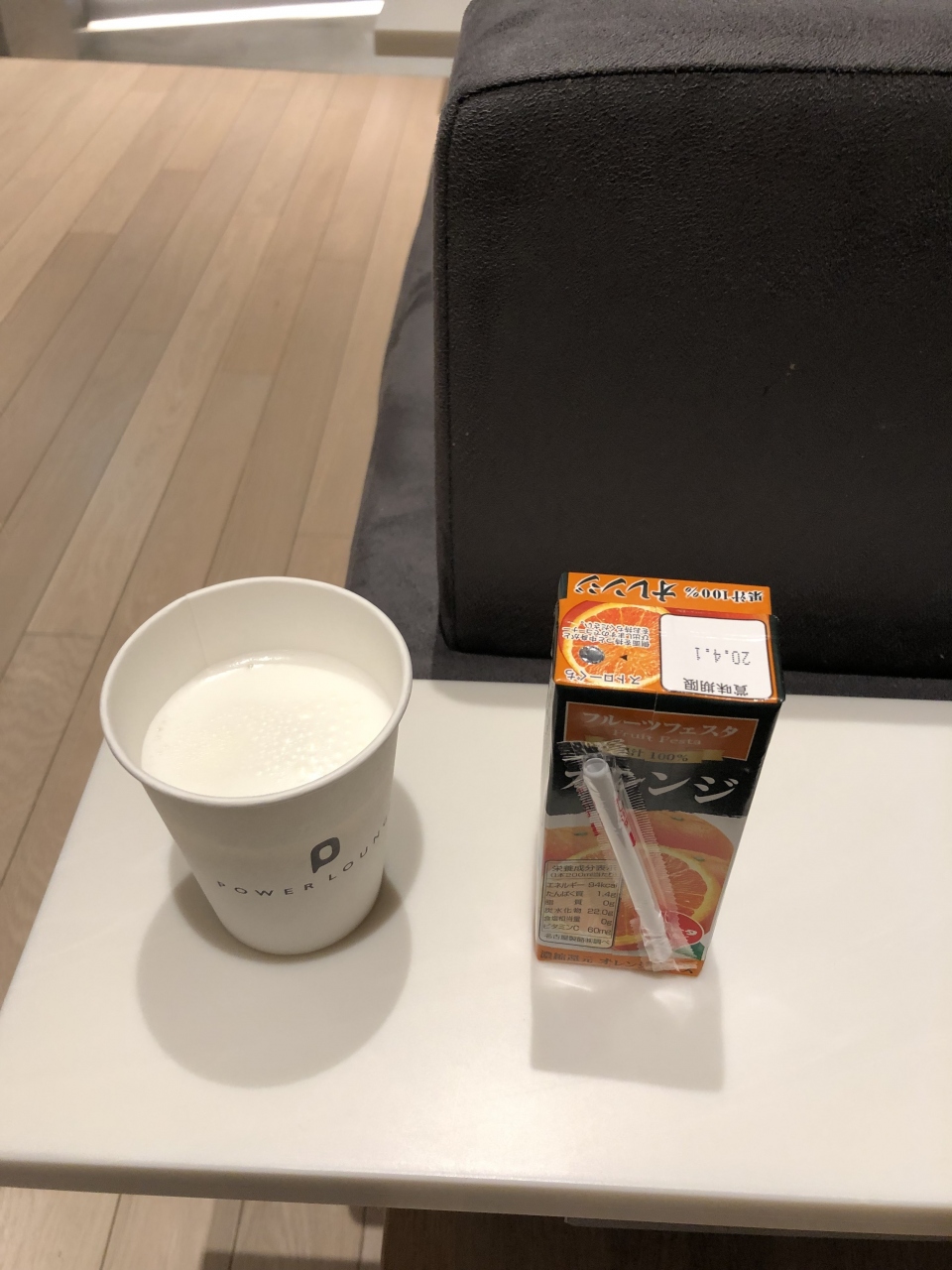保安検査前にあるカードラウンジですが、到着時にも使えるので便利です。広さはそれほどありませんが、ジュースやミルクなど、他のラウンジではサーバーからコップに注ぐタイプなのに対して、こちらは紙パックになっています。