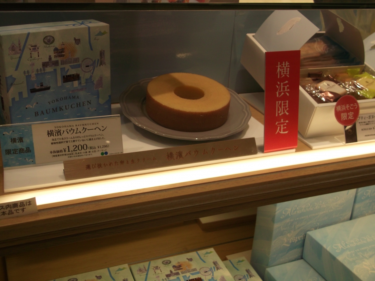 横浜駅東口隣接の、そごう地下食料品店街にある神戸発祥の洋菓子のショップです。ケーキ、クッキー、パイ、プリンなど種類も豊富ですが、こちらでは横浜限定のバウムクーヘンも販売されていました。パッケージの包装紙は横浜をイメージしたイラストでかわいらしいです。バウムクーヘンは、ほどよい甘さとふわふわの食感でおいしくいただきました。