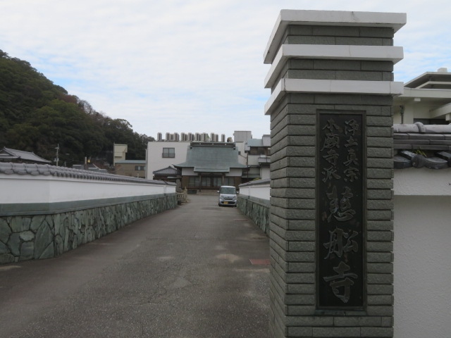 「慈船寺」と書かれた入り口の石柱から、本堂まで、結構長い参道で、両側が白壁というのもちょっと風情があっていいですね。行き着いた本堂は、入り口からも見えているのですが、小さく可愛い建物です。参道の長さには見合わないものでした。