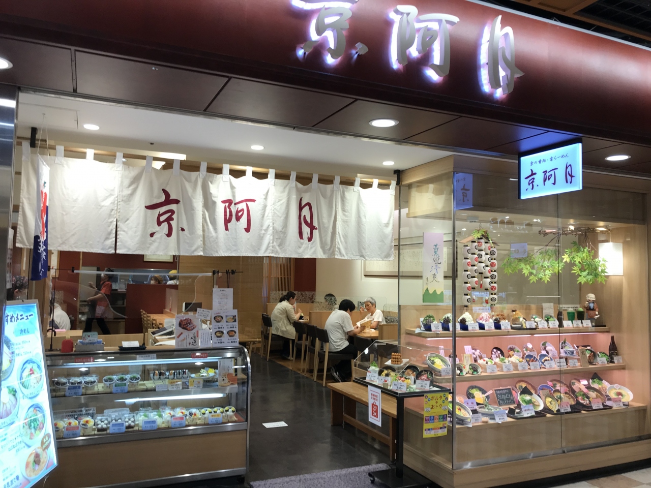 ポルタのレストラン街で遅めの昼食をとるのに、京阿月へ来店しました。今回私が頂いたのは、白だしラーメン。ラーメンは、しょうゆ、塩、味噌、とんこつと揃っていました。スープを飲むと意外としっかりとした白だしの味でした。旨味の感じられるなかなか美味しいスープです。具材は生麩、水菜、チャーシュー、めんま、海苔。麺は細めなストレート麺でコシはふつう。スープがおいしいあっさり目のラーメンでした。