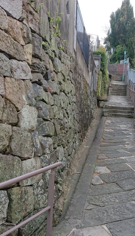 長崎の祈念坂は、浦上天主堂のすぐそばを通っている坂ですけれども石畳になっていてとても落ち着いた雰囲気を出していますが歩くのは意外と大変でした。色々なメディアで出たり映画でも紹介されている人気のスポットで昼間も良いですが夜の散歩もとても風情があって良かったです。