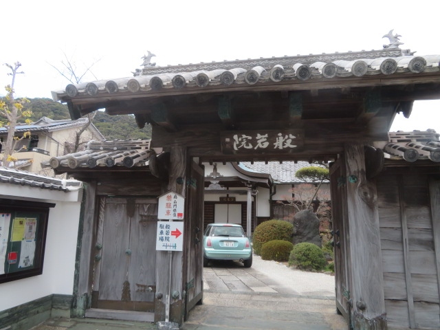 眉山のロープウェイを降りたあたりに、寺社が集中する寺町があります。その一つが般若院です。徳島市の寺町には、近代的な本堂もいくつかありますが、こちらはオーソドックスなお寺で、入り口の屋根の形がユニークです。
