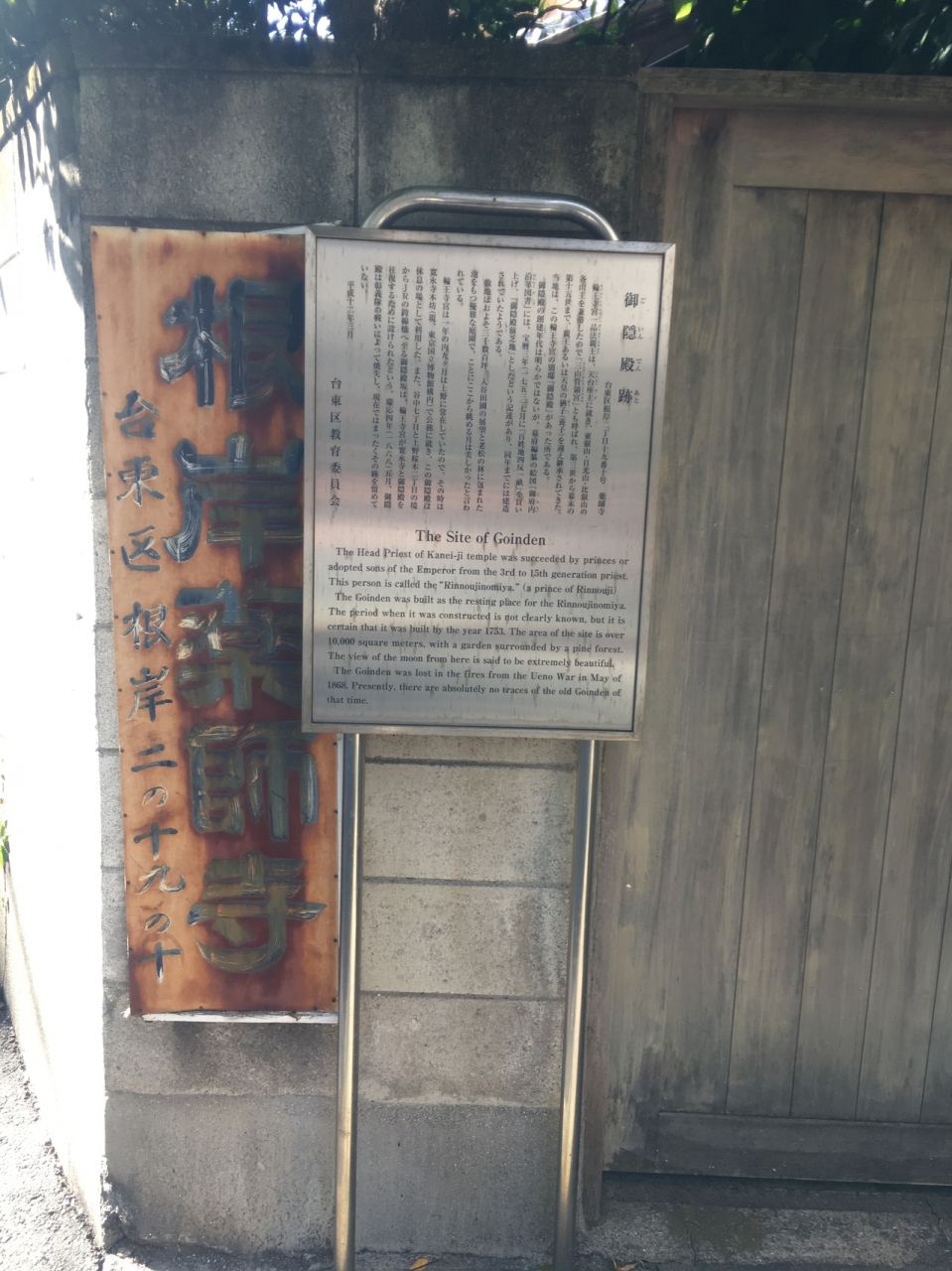 日暮里駅から徒歩で5分ほどです。根岸三平堂の道を日暮里駅方面へ向かうと道路際に表示板があります。路地を入ると民家のような本殿らしき建物とその横に「根岸薬師寺」の標柱が立っています。この敷地は「御隠殿跡」でもあるとの説明板が立っていました。寛永寺の輪王寺宮の別邸ということです。薬師寺の説明はありませんでした。