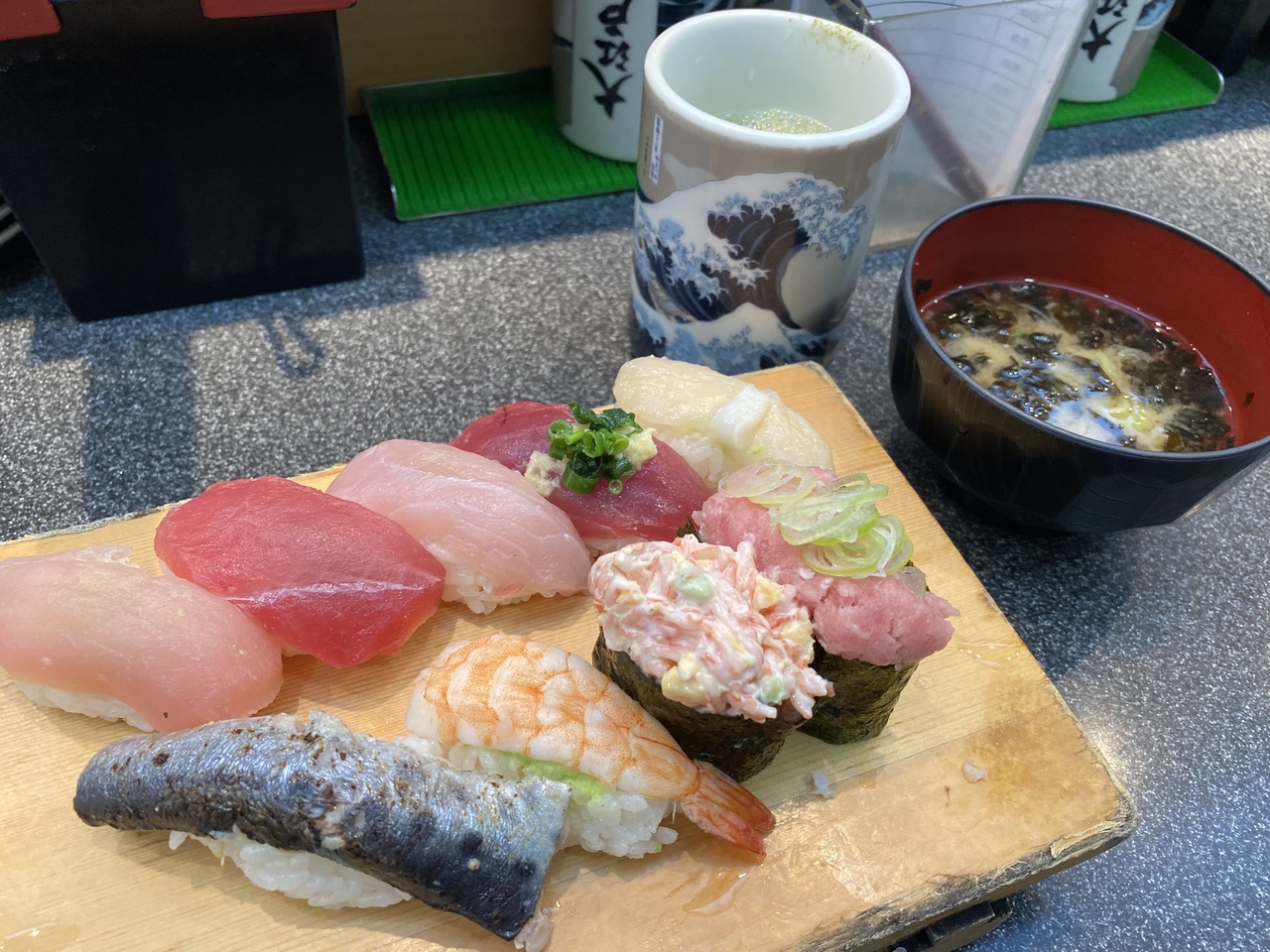 池袋駅東口にある回転寿司の店です。たまにランチで利用しています。回転寿司といってもセットがお得。岩のりの味噌汁もついて税込600円と破格です。この日は赤身が多めでしたか旬の生カツオが美味でした。今度は夜にサクッと利用したみたいです。