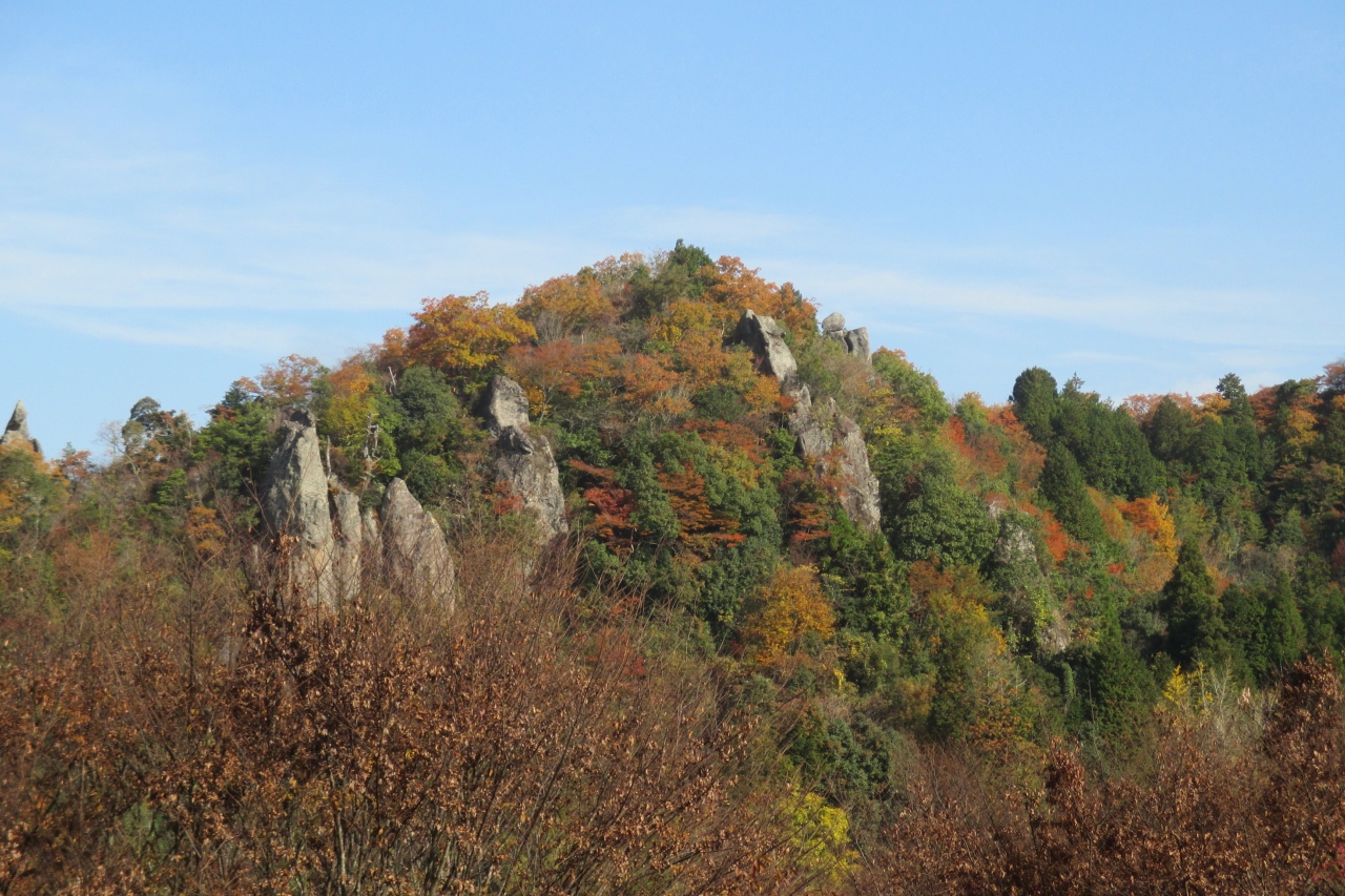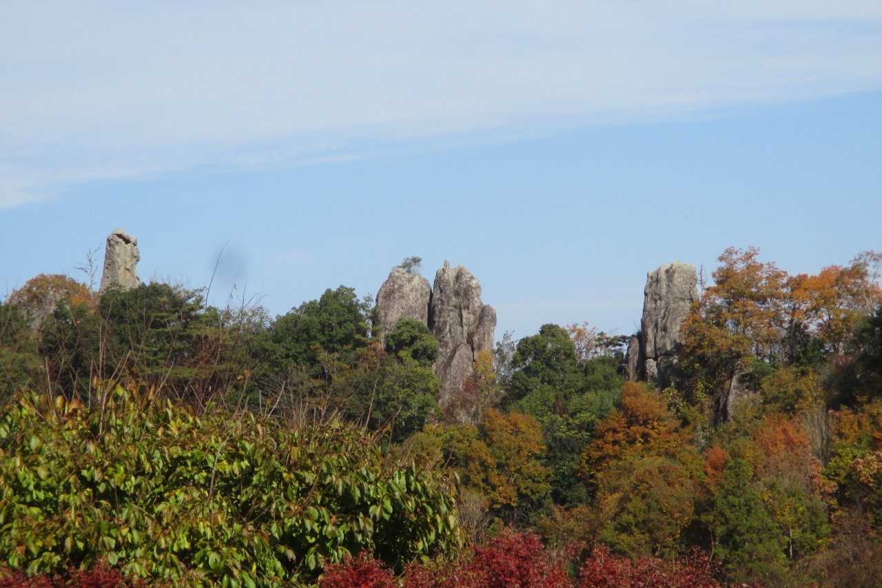 裏耶馬渓の観光スポットの1つである立羽田の景は、県道702号線から県道43号線に移って進んだところにありました。県道43号線上の展望場所からは目線の高さ近くに見えます。即ち、県道43号線が高さのあるところを通っているのです。しかし残念ながら、この展望場所からは,手前の木々が景色を邪魔してしまいます。時間があったら、下の里に下りた方が良いと思いました。