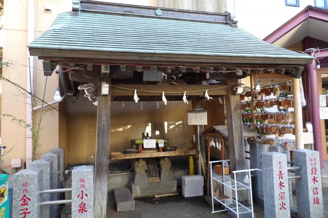 ここの手水鉢は寛政年間(1786年~1801年)に築かれたと伝えられる。四隅が鬼の石像で支えられている。これが「がまんさま」と呼ばれ、信仰されている。