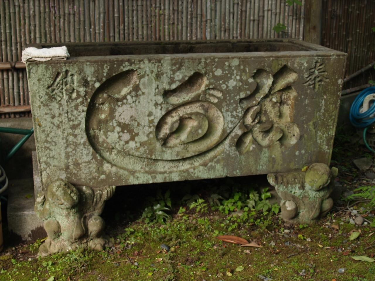 日蓮宗のお寺では伽藍などに意匠を凝らしたものが多く見られ、手水鉢にも意匠を凝らしたものがここ鎌倉でも2ヶ所も見られる。